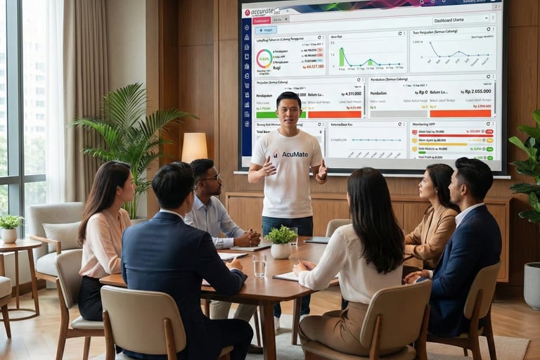 Layanan pelatihan implementasi Accurate yang komprehensif — dari setup awal sampai go-live. Cocok buat perusahaan yang baru mau mulai pakai Accurate atau yang mau "reset" dari nol karena setup sebelumnya berantakan.